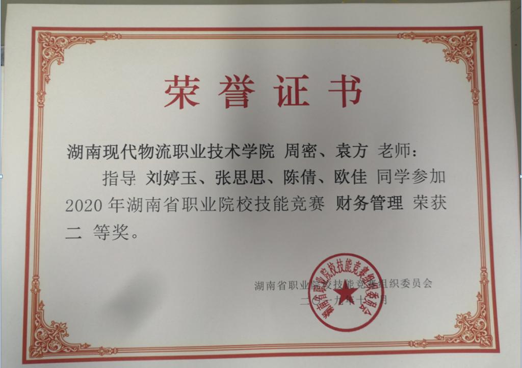 5.2020年湖南省教育厅主办的“湖南省职业院校高职组财务管理决策技能大赛”省二等奖