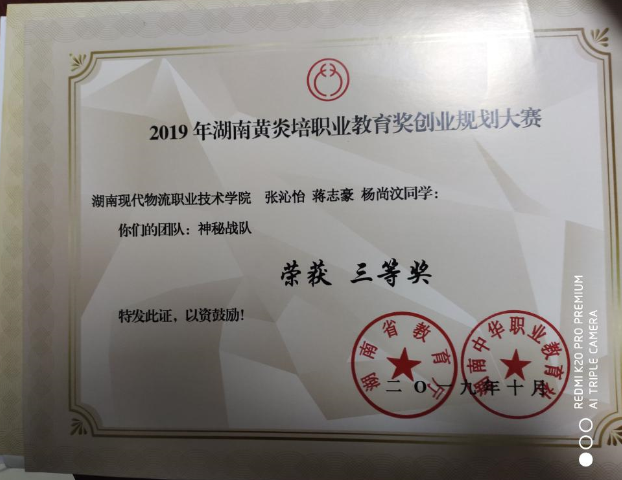 1.2019年湖南黄炎培职业教育奖创业规划大赛湖南省三等奖