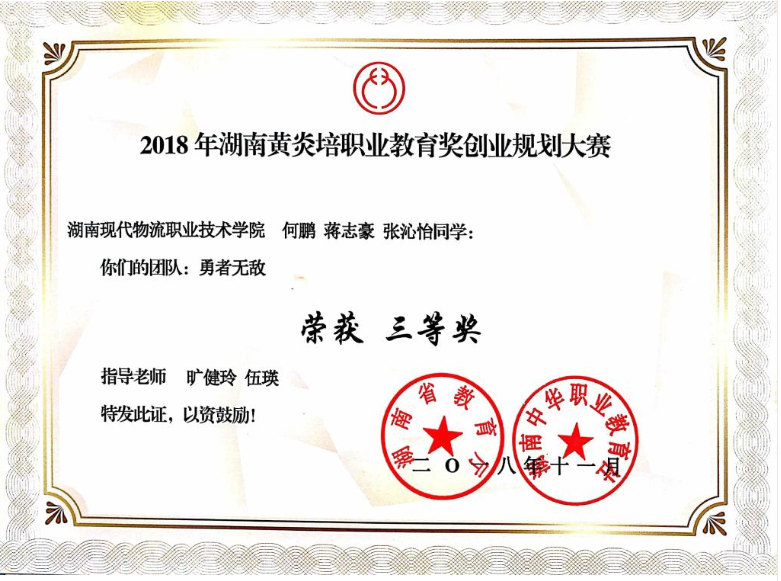 2.2018年湖南黄炎培职业教育奖创业规划大赛湖南省三等奖