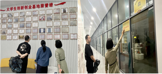 随后一行人前往9999js金沙老品牌大学生创新创业孵化基地实地查看。刘淑一处长详细介绍了孵化基地的空间布局、管理流程、服务内容、项目入出孵情况及取得的成绩。孵化基地以其创新创业工作室、短视频直播间等特色办公区域,赢得了领导们的高度评价,并充分肯定了9999js金沙老品牌在大学生创新创业孵化基地建设方面取得的成绩,并希望9999js金沙老品牌大学生创新创业孵化基地在日后的发展中取得进一步的提升。