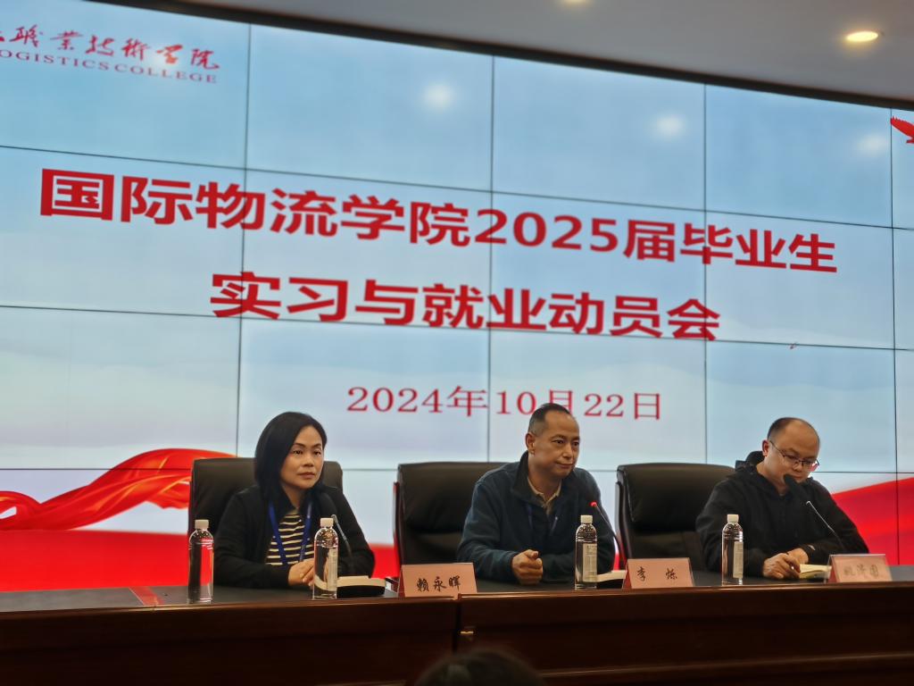 10月22号,国际物流学院在明德楼四楼召开2025届毕业生实习与就业动员会,并邀请专家进行就业指导讲座。国际物流学院党总支书记李烁、国际物流学院副院长姚济国、国际物流学院党总支副书记赖永晖老师、学生干事刘富建、就业指导专家胡勇、毕业班辅导员、在校毕业班全体学生出席了本次会议。会议由赖永晖主持。