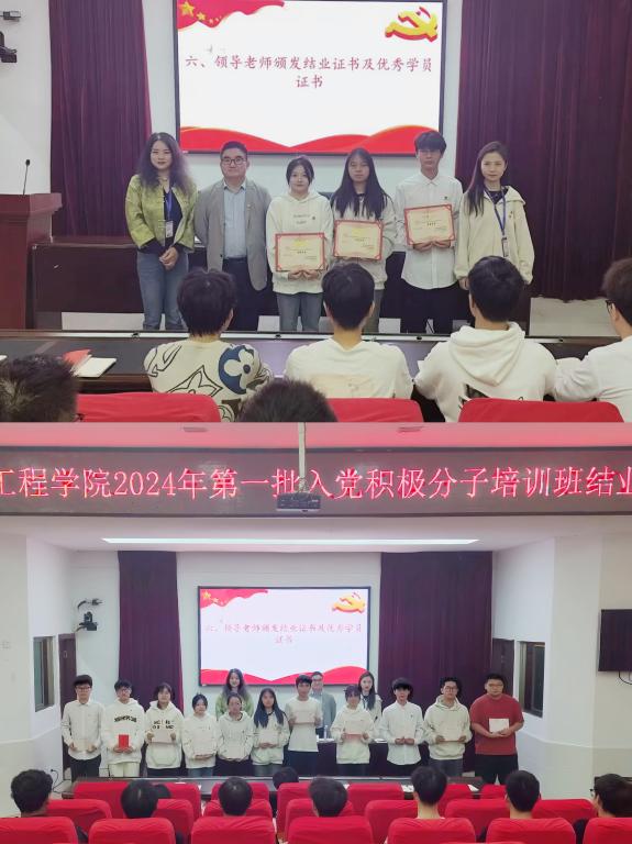 10月22日中午,物流工程学院2024年第一期入党积极分子培训班结业典礼于学术报告厅举行。学院党总支书记刘建辉、党总支专职副书记高琪昕、团总支书记赵思惠、入党积极分子及学院学生思想政治工作委员会全体成员参加典礼,典礼由高琪昕主持。