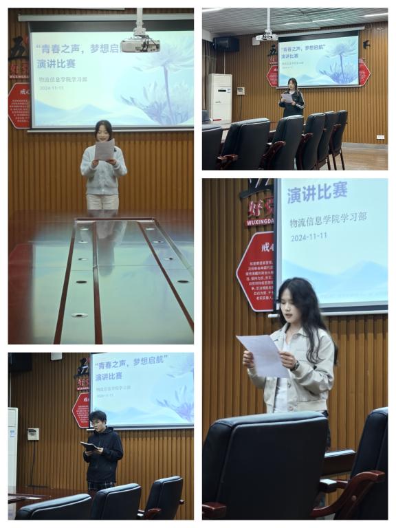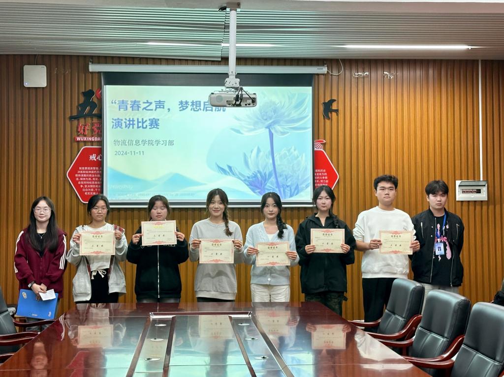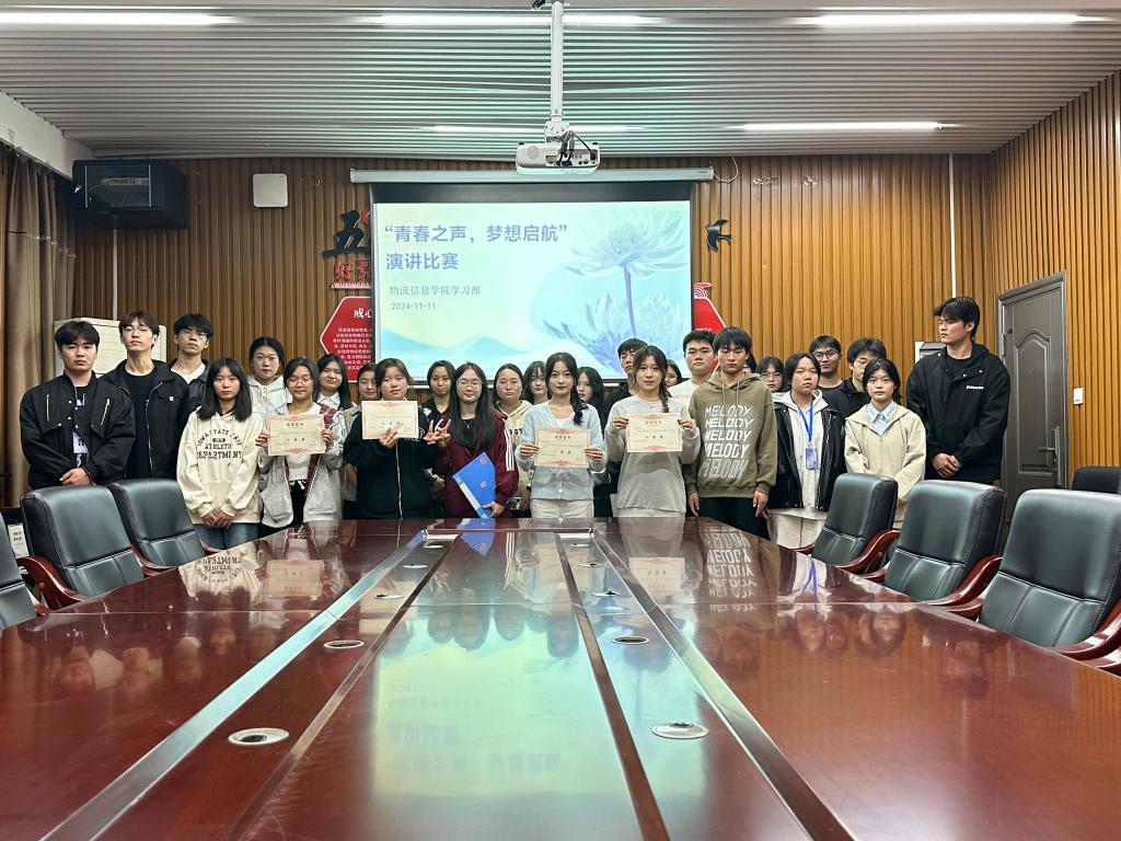 11月11日晚7:00,物流信息学院在崇技楼305会议室举行“青春之声,梦想起航”主题演讲比赛。学院团总支副书记欧阳经玲、专职委员吴帅、学生会主任杨壁文、宿管会主任姚佳智、学习部部长刘星力及所有参赛选手参加本次演讲比赛。