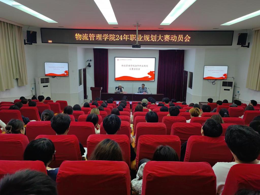 为加强大学生职业规划意识,进一步引导广大学生科学合理地规划人生,提升就业、创业能力,11月13日中午1点,物流管理学院在学术报告厅召开2024年大学生职业生涯规划比赛动员会议,学院副院长谭新明、学生干事何磊、全体专兼职辅导员、各班级工作联络员和班委代表参加会议,会议由学院党总支专职副书记曾恋之主持。