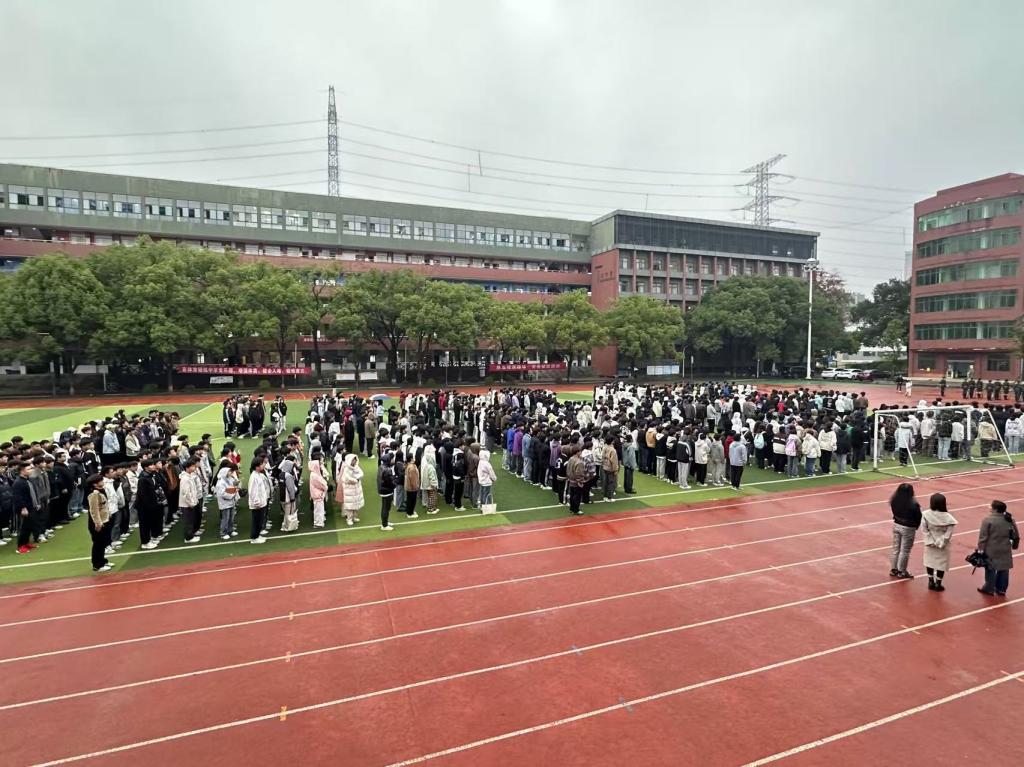 国旗护卫队身着统一服装,步伐整齐地护送国旗至升旗台。在庄严的国歌声中,五星红旗缓缓升起,全体肃立,共唱国歌,国歌声中饱含师生们对祖国深深的热爱与崇高的敬意。