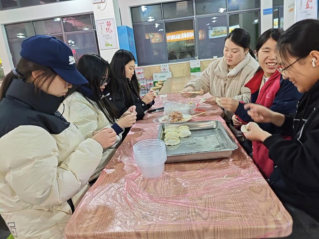 伴随一锅锅热气腾腾的饺子新鲜出炉,活动现场弥漫着令人垂涎的诱人香气。大家亲密围坐,细细品味亲手包制的饺子,真切体悟冬至佳节的温馨与欢畅。有的同学兴致盎然地拿出手机,定格这美妙瞬间,与远方的亲人挚友分享这份喜悦。