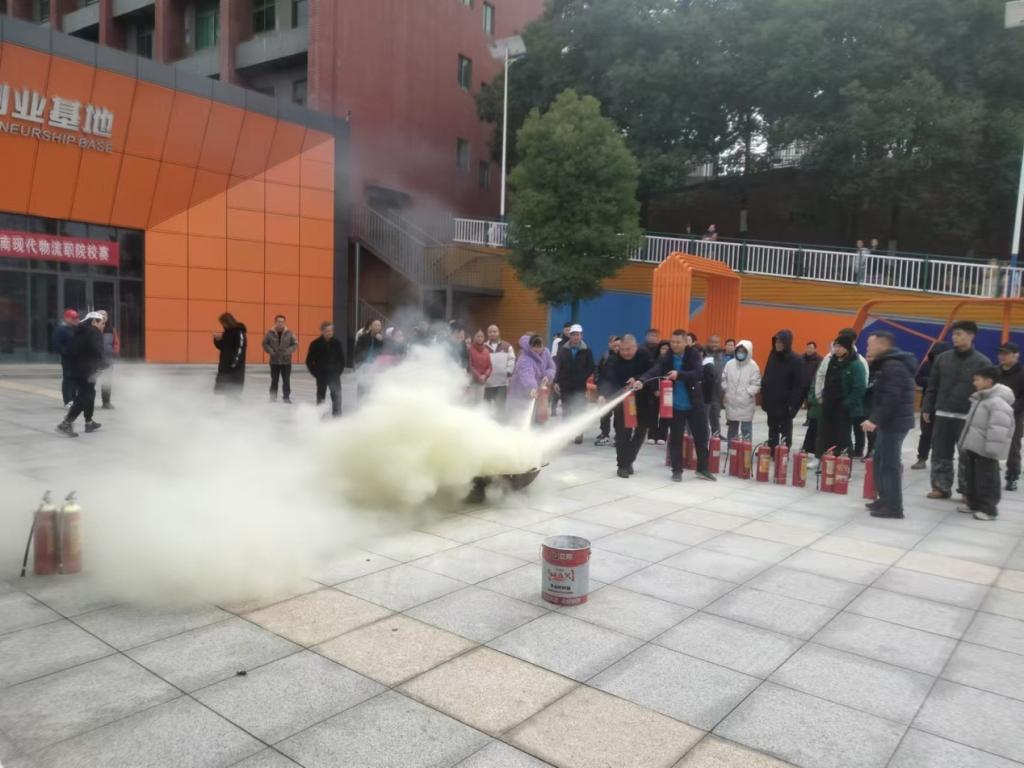 年关将至,气温骤降、校园用电量增大,导致火灾隐患有所增加。学校党委高度重视校园安全隐患的预防,由保卫部牵头,为进一步提升学校快递站、宿管及食堂各档口经营户人员的消防安全意识和灭火器的实操能力,学校保卫部于2024年12月22日中午,在学校双创基地前坪举行了一场常规消防器材的使用讲解和灭火实操的消防演练。