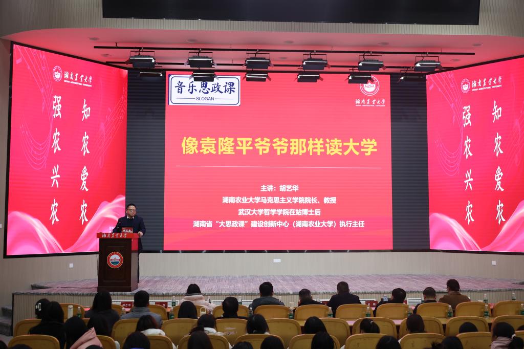 随后,胡艺华给线上线下全体师生讲授了《像袁隆平爷爷那样读大学》为主题的音乐思政课,从当年袁隆平爷爷是怎么读大学的、今天我们为什么要像袁隆平爷爷那样读大学、今天我们如何像袁隆平爷爷那样读大学三个方面,深入浅出地诠释了袁隆平的科学家精神,号召广大学子像袁隆平爷爷学习,做到道术统一、德业精进、博通古今、学贯中西、内外兼修、恪守初心,立志做一名合格的新时代大学生。