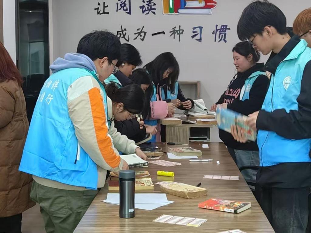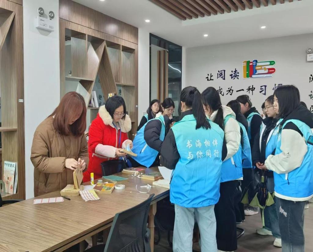 活动当天,在图文信息中心老师的悉心指导下,志愿者们分工协作,有条不紊地进行着书籍修复工作。有的仔细清理书页上的污渍,有的小心翼翼地粘贴脱落的纸张,还有的认真将书籍重新装订成册。每一个步骤都饱含着对知识的敬畏与对志愿服务的热忱,一本本泛黄的书籍在志愿者们手中重获新生。