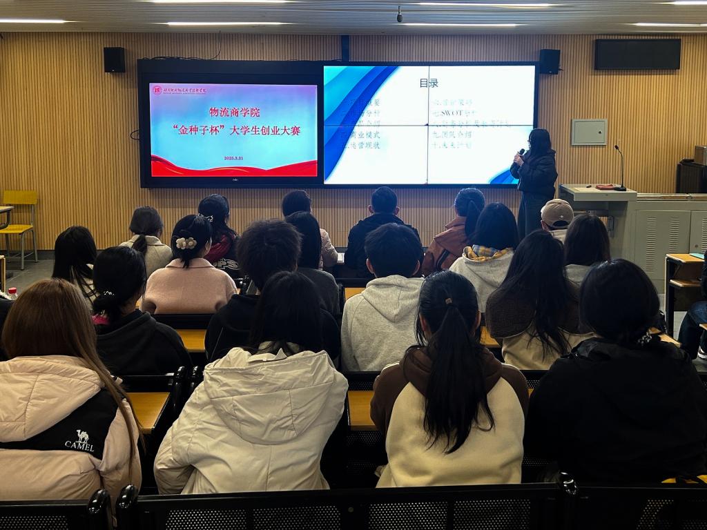 为深入贯彻省委、省政府支持大学生创业“七个一”政策的部署要求,激发我院学生创新创业热情,提升创新创业能力,3月31日下午,物流商学院在教学楼100教室举办了2025年“金种子杯”大学生创业大赛院赛。学院党总支书记储昱出席会议,专职副书记、辅导员、创业项目团队师生代表、学生代表参会。