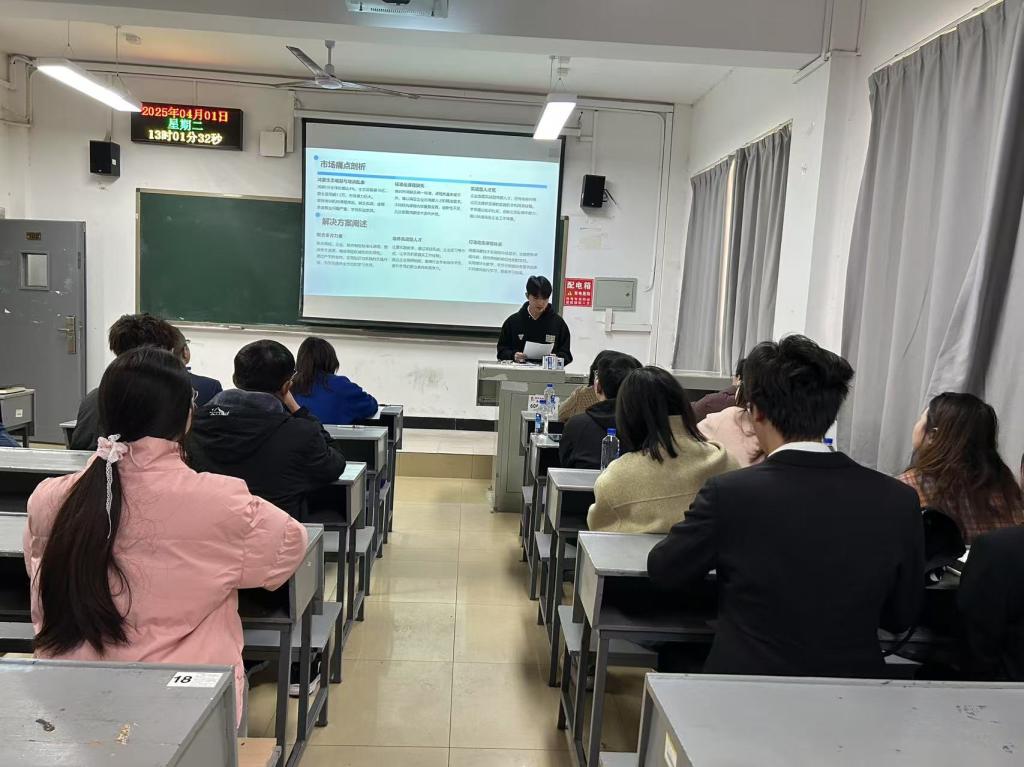 此次选拔赛共二支队伍入围学院现场答辩,入围院赛的团队依次上台进行项目陈述。团队成员凭借精心准备的内容展示,充分展现了他们在创业项目中的创新思维与实践规划,赢得了现场阵阵掌声。在评委提问环节,评委们从项目可行性、市场前景、商业模式等多方面提出问题,参赛团队沉着应对,与评委展开深入交流,进一步阐释了项目的亮点与发展规划。