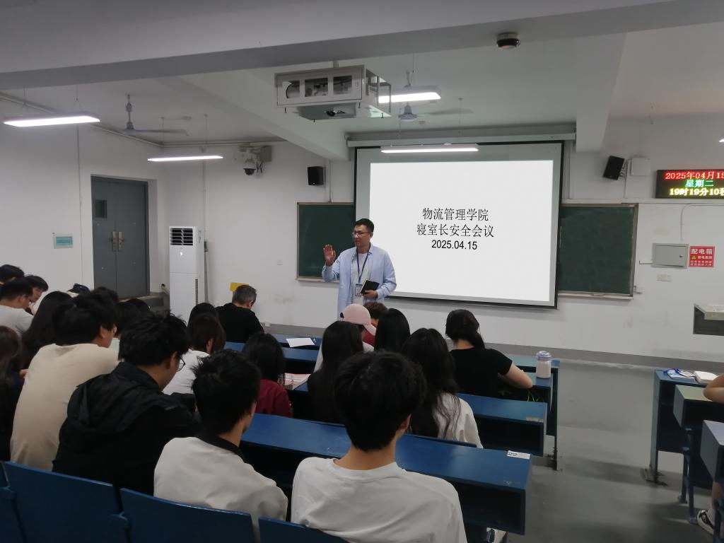 为落实学校安全管理工作要求,强化学生安全意识,压实寝室长责任担当,4月15日晚,物流管理学院针对近期校园安全形势召开全院寝室长安全工作会议。学院党总支副书记李振、专职辅导员代表、23级和24级全体寝室长参会。会议以“生命至上、预防为先、责任共担”为主题,通过制度宣传、心理疏导和职责部署三大环节,全面筑牢校园安全防线。