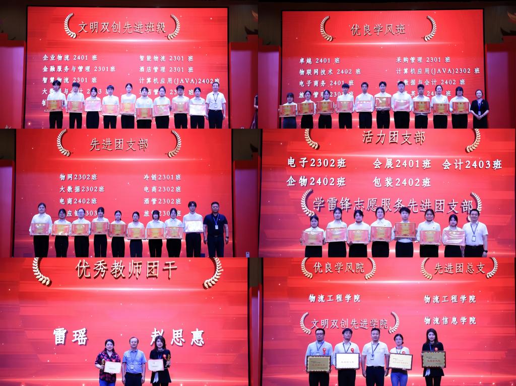 在表彰大会上,物流信息学院荣获“先进团总支”称号。同时大数据2302班和物网2302班团支部被评为“先进团支部”;包装2402班被评为“活力团支部”;学院心理部、劳卫部被评为“优秀部门”;智物2301班和计应Java2402班被评为“文明校园‘双创’先进班级”,物网2402班与计应(Java)2302班获评“优良学风班”。教师雷瑶以扎实的工作和突出的贡献,获评“优秀教师团干”,此外,我院多名杰出学子荣获优秀团员、优秀团干、优秀学生干部等个人荣誉。