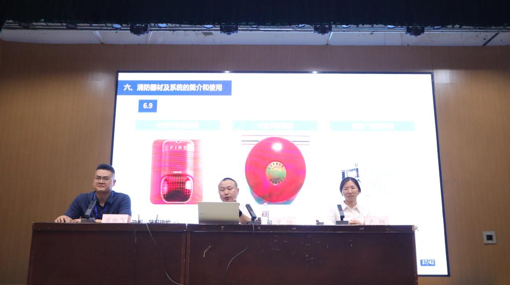 罗扬讲师以“47秒火情警示”为切入点,通过模拟某高校寝室因违规使用卷发棒引发火灾的视频,直观展现电器短路后火势迅猛蔓延的可怕过程。他结合教学场地与实训室特点,详细讲解了“人走断电”“易燃物隔离”等基础防火规范,以及灭火器分类、逃生通道标识识别等实操技能。“消防安全不是‘选修课’,而是每个人必须掌握的‘生存课’。”呼吁师生将消防意识融入日常学习生活。