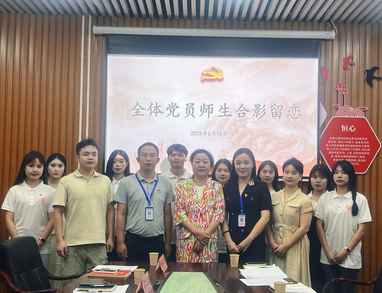 会议最后,全体与会党员师生合影留念。物流商学院始终把学生思想政治教育摆在首要位置,引导2025届毕业生党员以此次学习为契机,牢记组织嘱托,勇担时代使命,以坚定的信念和昂扬的姿态迈向人生新征程,书写无愧于时代的青春华章。