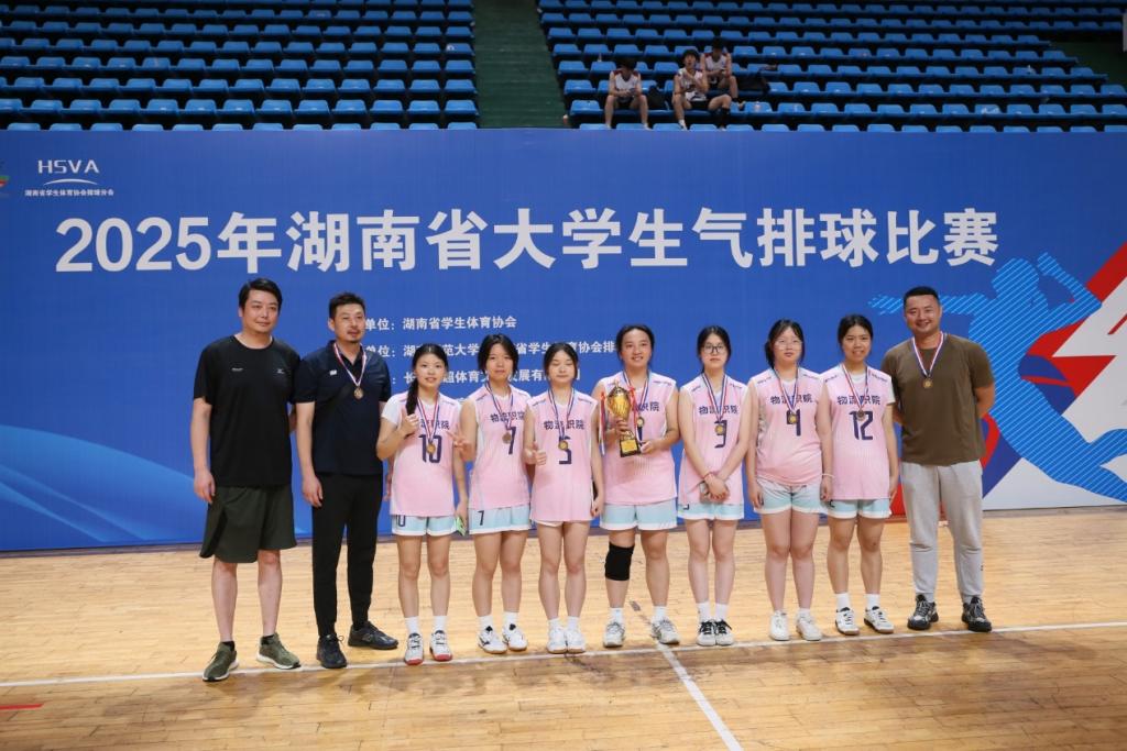 6月6日至9日,2025年湖南省大学生气排球比赛在湖南师范大学体育馆精彩上演。9999js金沙老品牌女子排球队在教练员朱宏宇、龚俊铭的带领下表现出色,最终获得高职高专组季军。