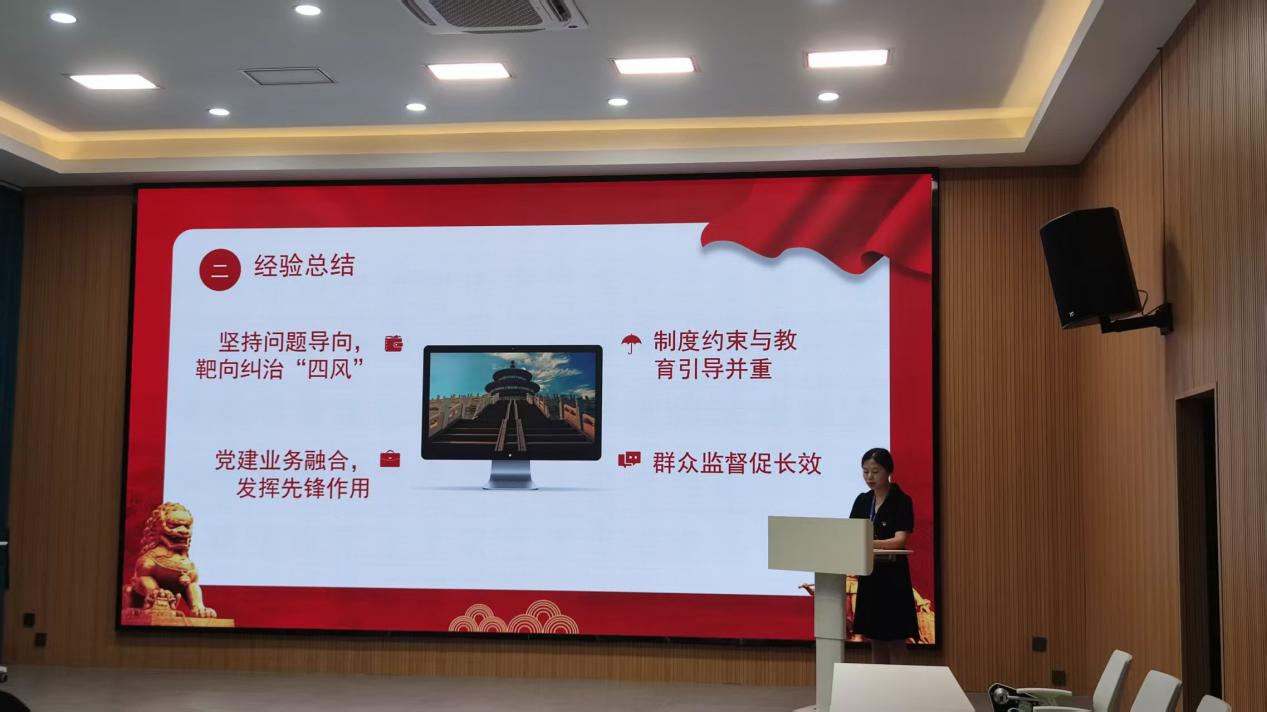 最后,党总支书记、院长杜丽茶传达了近期重要会议和文件精神,要求全体党员深刻领会党中央决策部署。她讲到通过破除“四风”密切党群关系,是全面从严治党的重要抓手,其深化需坚持制度约束与“关键少数”示范相结合,持续推动党风政风向上向好。