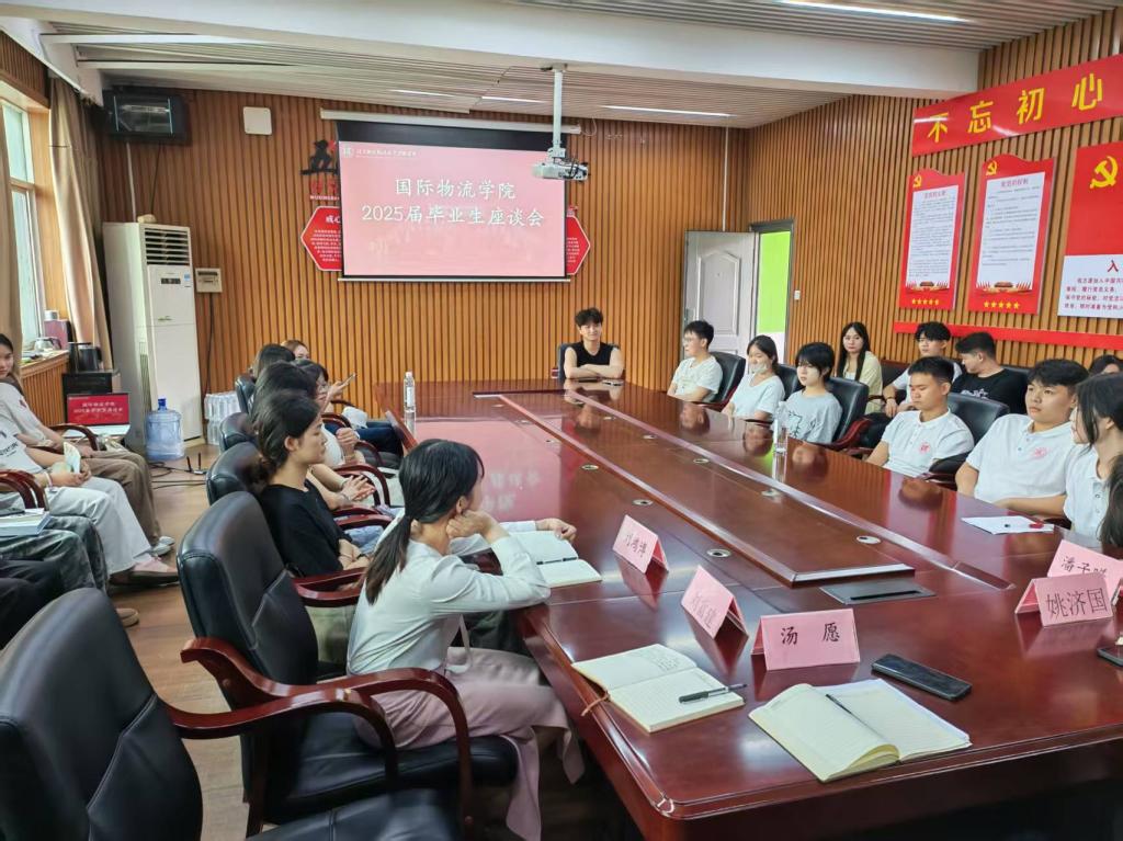 为进一步了解毕业生思想动态,优化人才培养和就业指导工作,6月10日,国际物流学院在崇技楼305会议室召开2025届毕业生座谈会。学院副院长姚济国、毕业班辅导员和2025届毕业生代表齐聚一堂,学院党总支副书记汤愿主持会议。