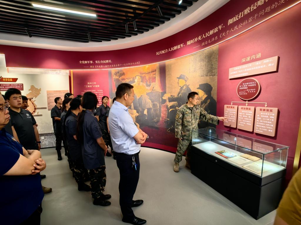 在芙蓉区武装部政工科科长陆吉涛的引导下,支部全体党员和“飞虎营”学生参观了民兵工作“三落实”陈列馆暨民兵训练基地。通过珍贵的历史文物、生动的影像资料和详实的文字介绍,师生们系统回顾了民兵队伍在不同时期为我国国防建设所做出的巨大贡献,深刻感悟人民军队听党指挥、能打胜仗、作风优良的光荣传统。一件件饱经沧桑的军械装备、一幅幅震撼人心的战斗场景,让在场师生接受了一次深刻的爱国主义教育。