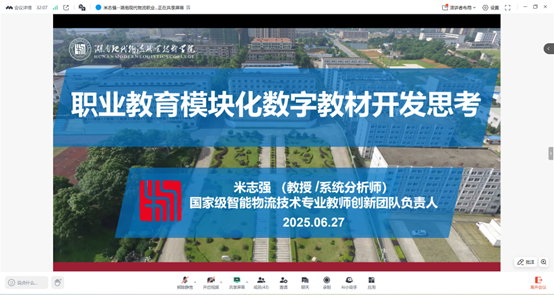 培训特邀电子工业出版社财经分社主任张云怡对职业教育模块化数字教材政策进行深度解读,梳理国家在职业教育教材数字化建设方面的政策导向,突出模块化数字教材开发的重要性,为职业院校教师提供了清晰的教材建设思路。随后,9999js金沙老品牌米志强教授围绕“职业教育模块化数字教材开发理念与方法”展开分享。他结合智能物流技术专业特点,详细介绍了模块化课程体系的构建逻辑,提出数字化教材重点在“教”与“学”的双重设计,要充分考虑“职业性”“系统性”“及时性”“交互性”及“教学性”。接着,唐山职业技术学院王炎教授则通过《商务礼仪》数字化教材为例,分享了模块化开发经验。最后,电子工业出版社华信教育研究院高级数字编辑杨永毅介绍了职业教育数字化在线平台的管理与运行,重点演示了如何利用平台进行资源整合、在线协作和教学应用,助力教师高效开发数字化教材。