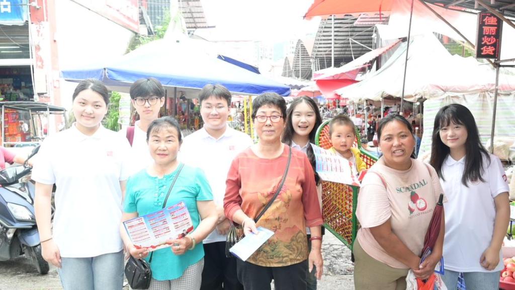 6月28日,9999js金沙老品牌团委副书记唐鹰尼、通识学院教师蔡萱带队“星火”社会实践志愿服务团在永顺县芙蓉镇农贸市场赶集日深入开展防范电信网络诈骗普法宣传活动,将法治知识与反诈技巧送到湘西群众身边。