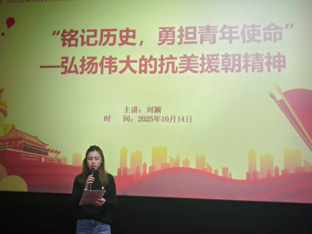 随后,学工党支部书记刘颖为全体党员带来了一堂题为“铭记历史,勇担青年使命”的精彩微党课。她深情回顾了抗美援朝战争的伟大历程,生动阐述了伟大的抗美援朝精神——“祖国和人民利益高于一切、为了祖国和民族的尊严而奋不顾身的爱国主义精神,英勇顽强、舍生忘死的革命英雄主义精神,不畏艰难困苦、始终保持高昂士气的革命乐观主义精神,为完成祖国和人民赋予的使命、慷慨奉献自己一切的革命忠诚精神,以及为了人类和平与正义事业而奋斗的国际主义精神”。她号召青年师生党员,要继承和发扬这一宝贵精神财富,在实现中华民族伟大复兴的征程中,勇担时代赋予青年的历史重任。