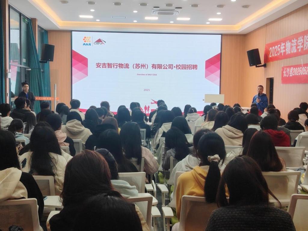 10月21日下午,安吉智行物流(苏州)有限公司物流管理学院专场宣讲会在学校双创路演厅成功举办。此次招聘会旨在搭建企业与学院之间的沟通桥梁,为学院2026届毕业生提供优质的实习和就业机会,并加深学生们对物流行业的理解与认识。招聘会现场气氛热烈,吸引了现代物流管理(企业物流方向)、邮政快递运营管理等专业的近200名学生参加。学院党总支书记李志红、副院长谭新明、副院长曾恋之、现代物流管理(生产物流方向)专业教研室教师代表胡元庆、相关班级辅导员一同到场。