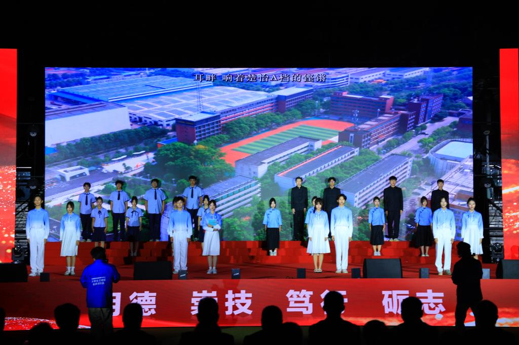 节目以“萌芽、坚守、赓续、永恒”为脉络,融合叙事、朗诵、舞台演绎于一体,生动呈现学校六十年办学历程。第一幕“萌芽·初心如炬”,校友代表深情追忆1965年创校之艰与迁址之路,“六十年,乙巳之约,山海不忘”道尽岁月情深;第二幕“坚守·春风化雨”,教师、后勤与学管代表依次登台,以粉笔白发、深夜灯影,配以《奉献》旋律,诠释“立德树人六十载”的无声坚守;第三幕“赓续·青春启航”,在流动光影与轻快节奏中,新老学子于智慧物流实训与技能赛场挥洒朝气,誓要“续写物流新篇”;第四幕“永恒·薪火璀璨”,全体演员齐聚阶前,“明德崇技,笃行砺志”的校训与“续写百年华章”的誓言交相回荡,校徽与“60”字样交相辉映,《我爱你中国》激昂奏响,将晚会推向高潮。