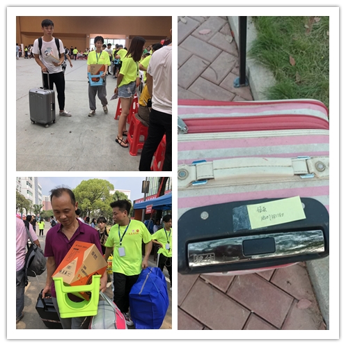 早在三天前我院领导就在布置迎新活动,但是事无巨细,也总有遗漏的环节,今天有志愿者提到新生行李放在接待点,如有遗失或误拿怎么办?这一问题的提出,我院学生干部马上想到解决措施:让新生在行李箱用便利贴写上自己的姓名及联系方式。这样就避免了遗失或误拿。