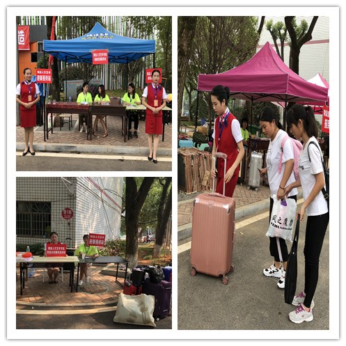上午8:00,我院迎新志愿们早早的到了接站点布置,上午11:00学院迎新工作人员就进入了紧张有序的迎新工作之中。一张张热情的笑脸,一句句亲切的问候,一项项贴心的服务,欢迎远方而来的新生。我院空乘、高乘专业穿上制服成了学校一道亮丽的风景线。