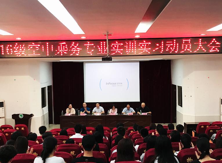 2018年6月5日下午3:30分,物流人文艺术学院隆重召开校企合作空中乘务专业2016级实训实习动员大会。物流人文艺术学院刘淑一院长、物流人文艺术学院蒋兴君副院长、物流人文艺术学院姚济国副院长、物流人文艺术学院唐彪部长、交通服务教研室杨琼主任、校企合作空中乘务专业吴泽宗主任出席了此次实训实习动员大会。