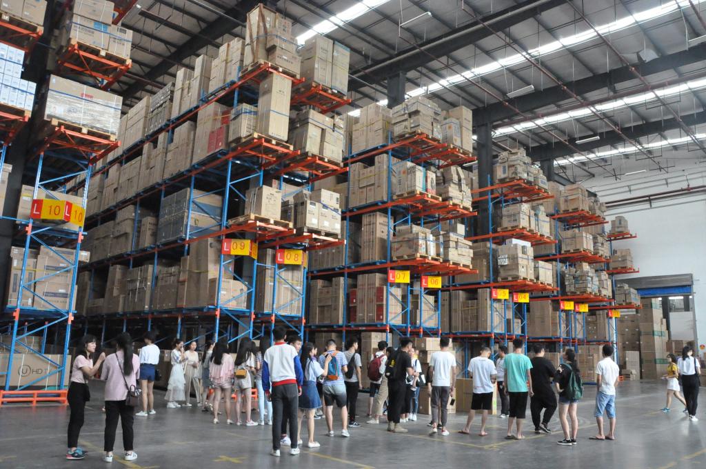 同学们排成两队有序的进入仓库参观,仓库主管马滢和朱勇为大家讲解了苏宁物流的企业文化和小件仓的企业工作时间段分工、物流的分地区输送等具体的相关知识。仓库经理何辉从物流设施设备的操作演示;大件货物的入库、在库、出库流程;如何提高出库效率;提问解答四个环节为同学们讲解了物流内部流通具体过程。