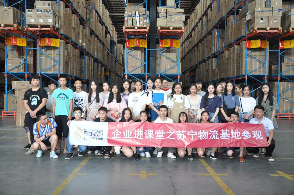 5月26日上午,在苏宁物流公司开展了苏宁物流班的第四课,本次课程是同学们通过实地观摩体验来深入了解苏宁的企业文化、运营模式、及高科技设施设备。本次课程由人事培训部朱腾亚全程带领,仓库主管马滢和朱勇、仓库经理何辉讲解,苏宁物流班全体同学参与学习。