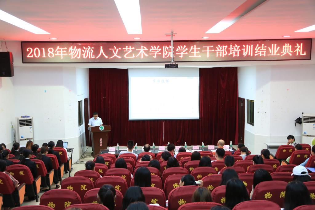 5月30日,物流人文艺术学院第一届学生干部培训总结暨表彰大会在学术报告厅隆重举行,校学生处处长刘松山,物流人文艺术学院党总支书记、院长刘淑一,党总支副书记兼副院长姚济国、蒋兴君,体育部部长唐彪,办公室主任肖兴,学生干事汤愿及辅导员黄晔出席大会并为本届学生干部培训中获奖集体和个人颁奖,本次大会由团总支书记龚韵洁主持。