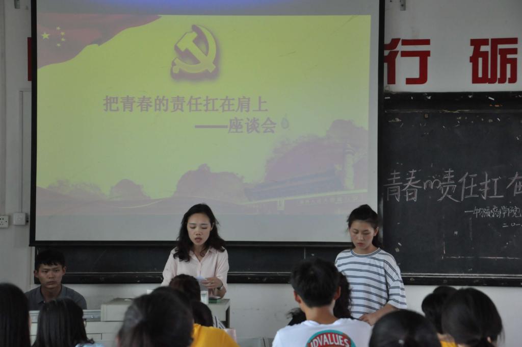 为引领学生党员深入学习十九大精神,传承经典,铭记历史,注重发展,描绘未来,2018年5月15日中午,物流商学院师生联合支部师生座谈会在科技楼503召开。师生联合支部书记储昱同志、老师党员李芳、何莉洋、龚君豪、陈珊以及商学院全体预备党员和入党积极分子参加了此次会议。