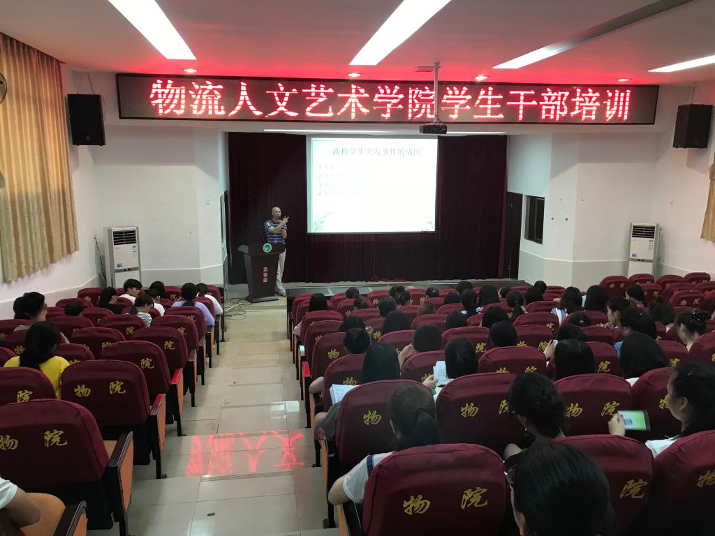 2018年5月17日,物流人文艺术学院体育部部长唐彪老师在校图书馆学术报告厅给学院学生干部上了一堂关于“学生干部突发事件防范及应急能力提升”的专题讲座,告诉同学们应如何防范和处理校园突发事件。