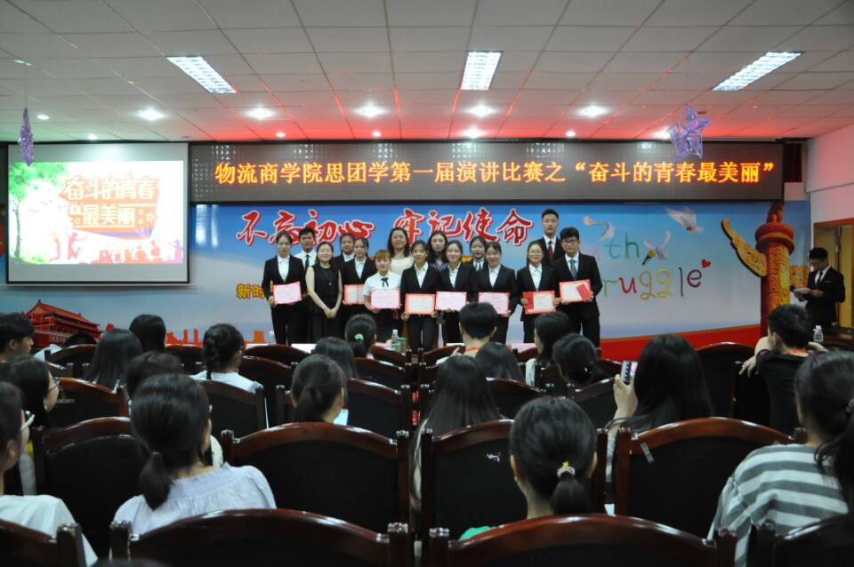 2018年5月21晚7点,由物流商学院思团学举办的“奋斗的青春最美丽”演讲比赛在办公楼四楼隆重举行。出席本次比赛的评委有校宣传部副部长欧阳昌雄老师、物流商学院党总支书记储昱老师以及商学院辅导员老师们。