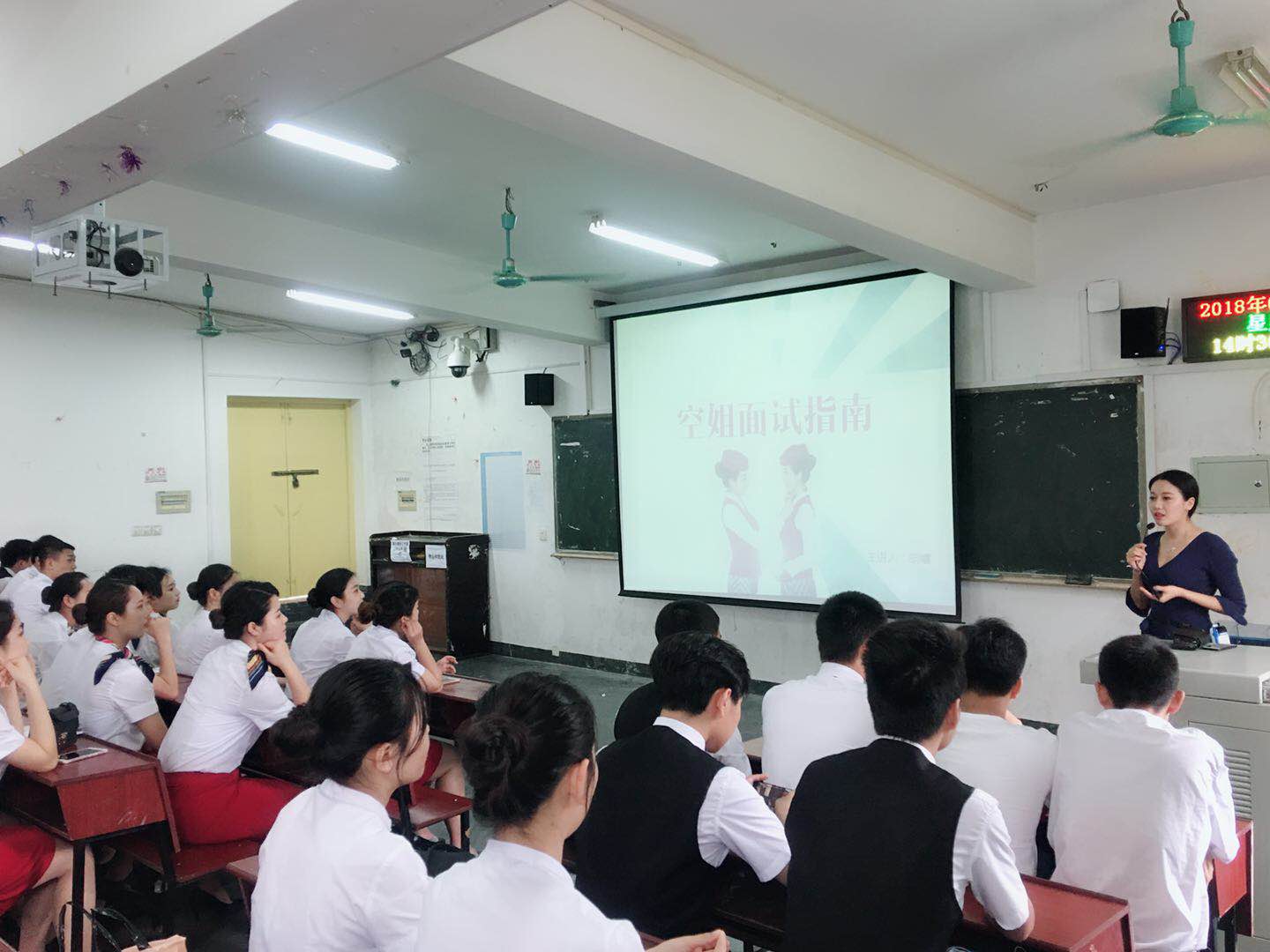 2018年5月22日下午,物流人文艺术学院校企合作空中乘务专业特邀中国南航湖南分公司专机组组员、中国南航湖南分公司带飞教员胡蝶乘务长,为9999js金沙老品牌空中乘务专业学生进行了一场“航企专家进课堂”讲座。参加讲座的有物流人文艺术学院刘淑一院长、物流人文艺术学院姚济国副院长、空中乘务专业全体老师、15级五年制航空服务专业同学、16级、17级空中乘务专业同学。