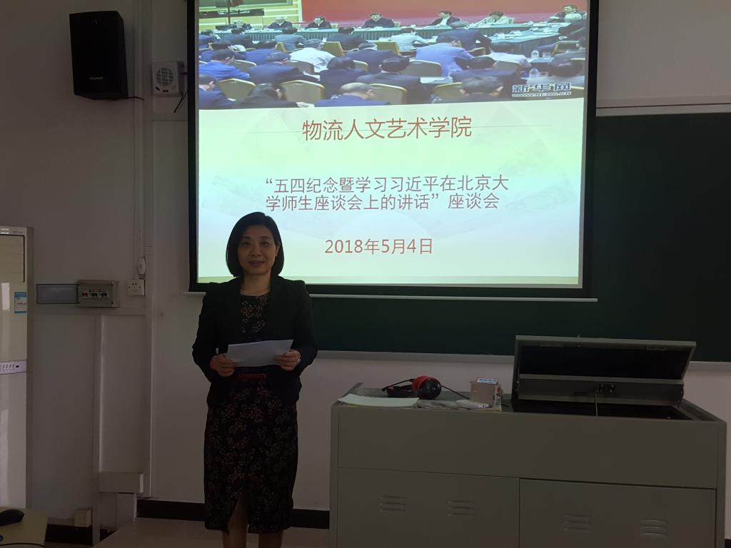 2018年5月4日,物流人文艺术学院在科技楼404召开“五四纪念暨学习习近平在北京大学师生座谈会上的讲话”座谈会。人文艺术学院副院长蒋兴君担任此次座谈会主持人,参加本次座谈会的有人文艺术学院院长刘淑一和团学会及各班主要的学生干部。