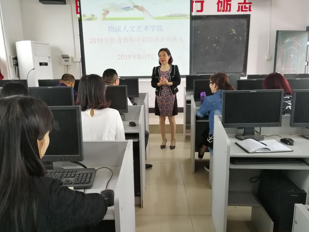 2018年5月7日下午,物流人文艺术学院2018年拟聘用人员岗前培训开班仪式在科技楼403举行。院长刘淑一、副院长姚济国、体艺部长唐彪、院办公室主任兼综合干事肖兴及7名培训班学员参加了会议。会议由副院长蒋兴君主持。