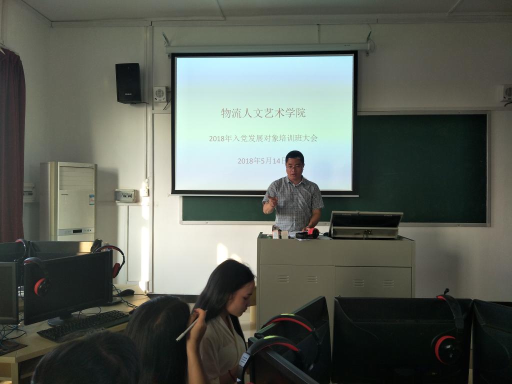 物流人文艺术学院于2018年5月14号在科技楼404举行了入党发展对象培训大会。此次大会主要是针对1602期和1701期入党积极分子所召开的。会议秉承着“牢记使命,砥砺前行”的思想,以为党组织培养一批思想觉悟高、素质能力过硬的预备党员为目标。