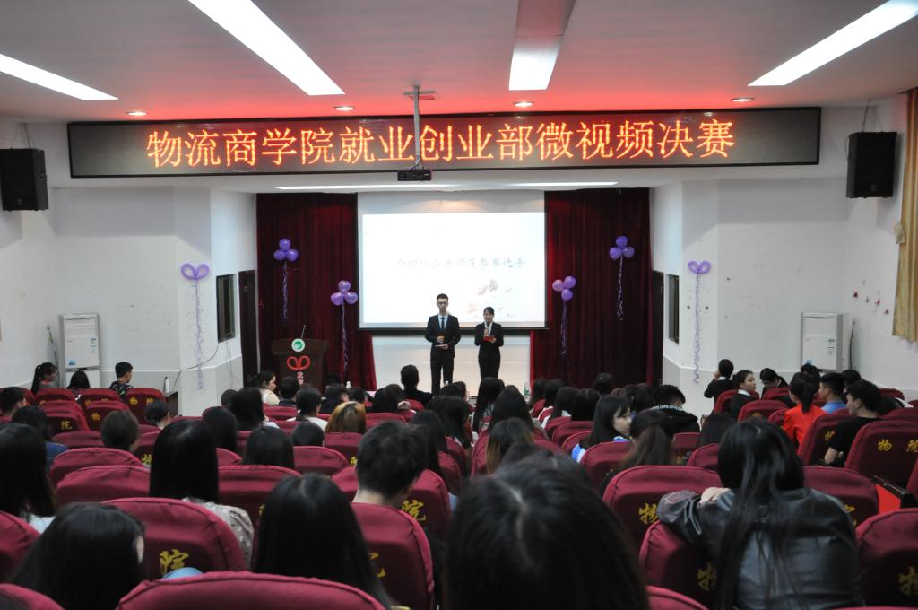 2018年4月17日晚,物流商学院在湖南现代物流学院的图书馆学术报告厅举办微视频大赛。该大赛由物流商学院“思团学”的就业创业部主办,参加的嘉宾有物流商学院党总支书记储昱,物流商学院副院长邢伟,物流商学院学生干事郑朴生,团总支书记李芳,综合干事谢曹红,辅导员陈珊、何莉洋、龚君豪。