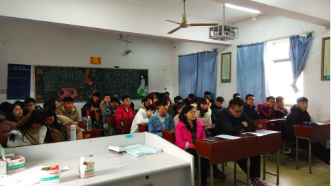 2017年12月28日,物流工程学院党总支学生支部预备党员发展座谈会在教学楼409召开,物流工程学院学生党支部书记梁林飞同志、辅导员马菊同志,李俊、谢海涛、王佳豪等11名学生入党积极分子参加会议。