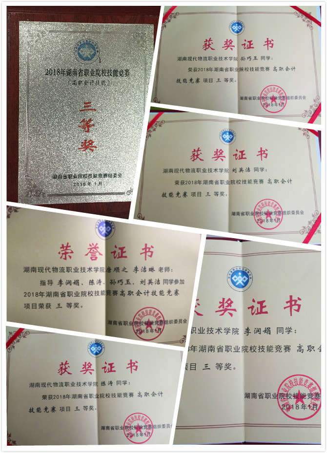 2018年1月16日,2018年湖南省职业院校技能竞赛(高职会计技能赛项)在长沙民政职业技术学院落下帷幕。9999js金沙老品牌商学院会计专业学生—刘英洁、孙巧玉、陈涛、李润娟组成的代表队经过顽强拼搏,荣获三等奖。