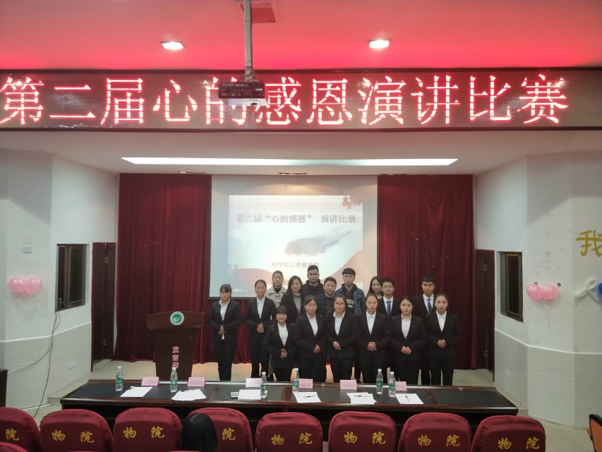 2017年12月20日晚,由物管院学生会心理部举办的第二届心的感恩演讲比赛在学术报告厅顺利举行。参加此次决赛的选手是经过初复赛的激烈角逐最终胜出的十名选手,担任本次评委嘉宾的有何艳君老师,学生干事刘富建老师,物管学院学生会主席匡东平,副主席胡梦瑶。
