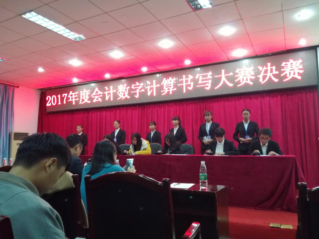 2017年11月29日晚七点,由校团委主办,商学院学生会办公室、会计协会承办的会计数字计算书写决赛,在办公楼四楼隆重举行,出席本次的领导与嘉宾有邢伟副院长,王亚丽老师,李芳老师,郑朴生老师,龚君豪老师。比赛全程秉着“公平、公正、公开”的原则,从书写规范程度,仪表形象,卷面工整性,卷面成绩等方面进行打分。