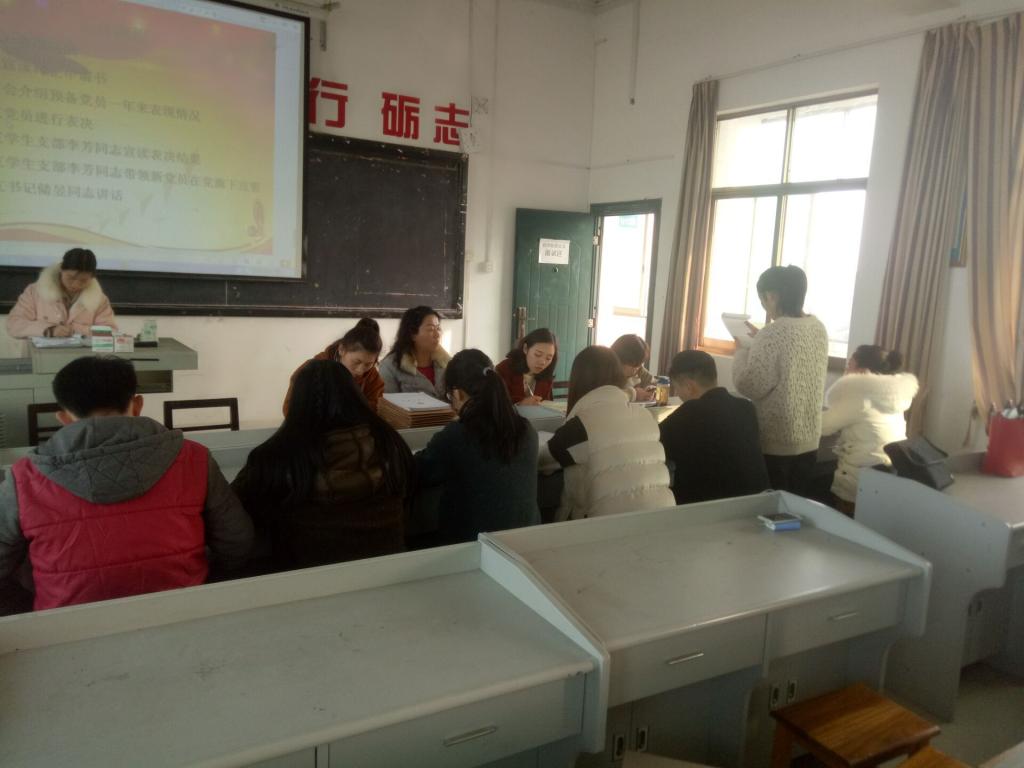 会上黄倩、李智慧、贺诗茗、张进、刘英洁、闵星星、邓祥辉共七位预备党员依次进行宣读转正申请书,并归纳总结在预备期间个人的收获及目前自身仍然存在的各种问题。院思政主任吴常同志介绍了七位预备党员在预备期间的各项表现情况。