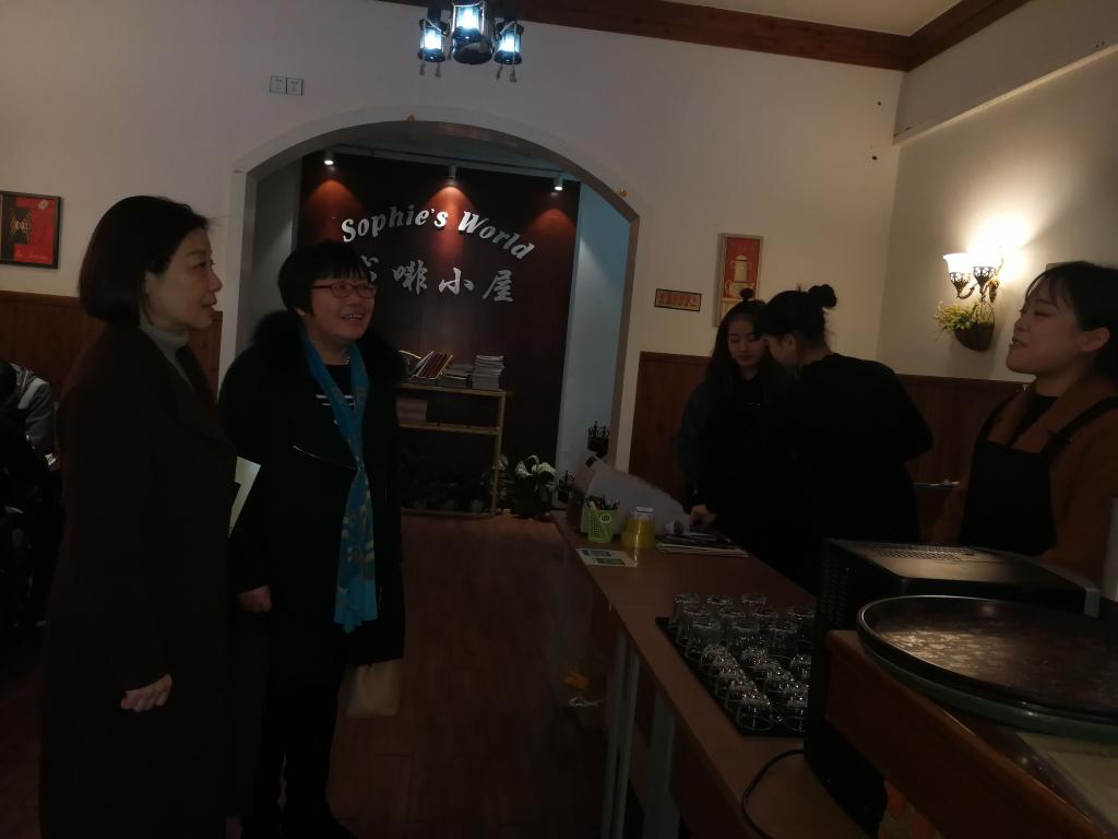 调研交流会结束后,考察调研组一行实地调研了管理工程系学生创新创业实践一条街、酒店管理专业学生实践基地书啡小屋、学生成长辅导室、辅导员名师工作室。