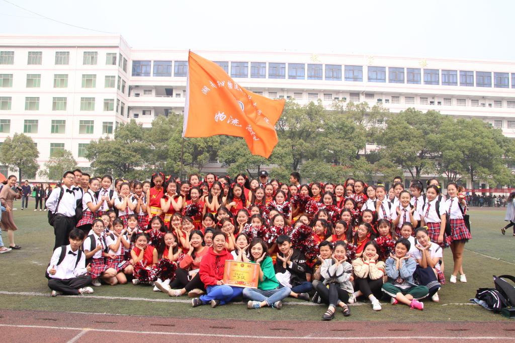 团体操,一共53个啦啦操队员,40人朗诵队员,以出色的表演夺得第一名。