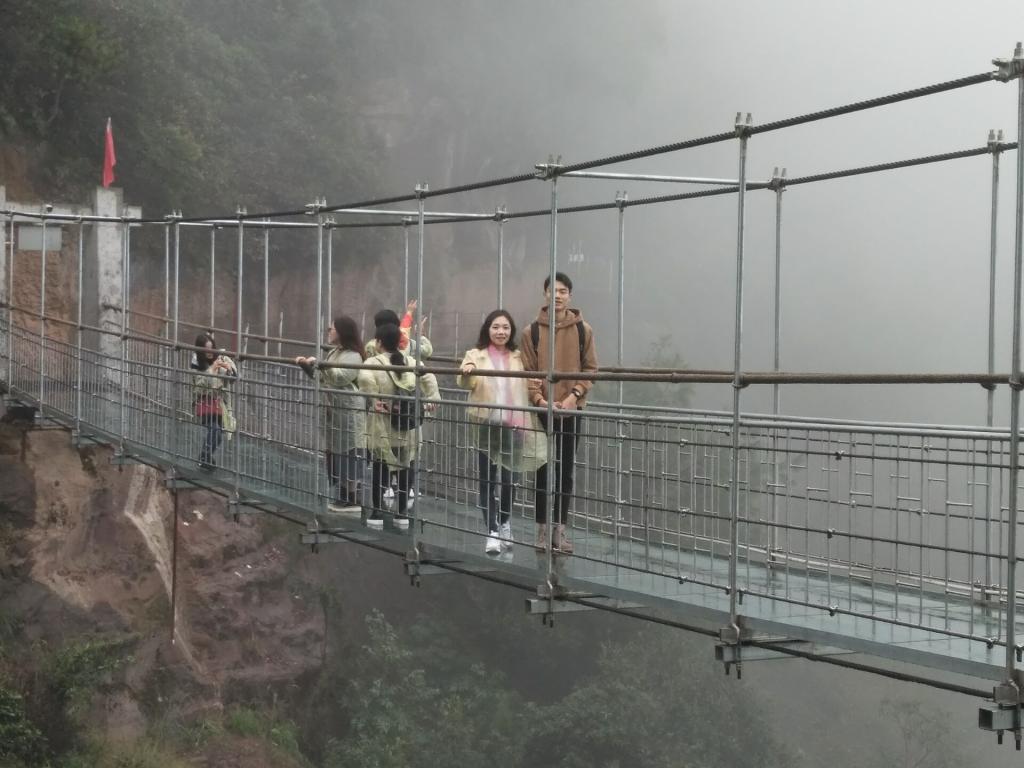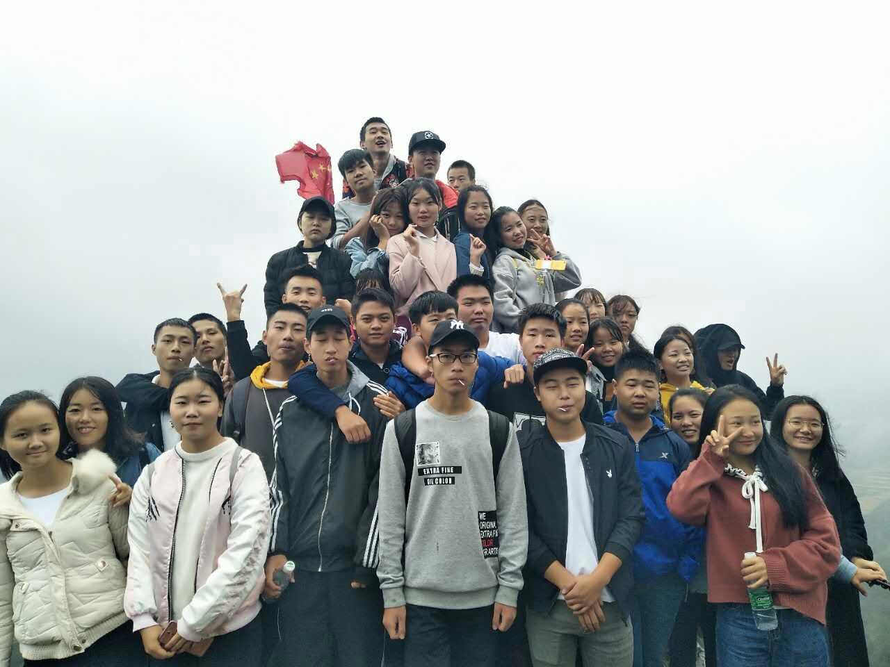 同学们经过一夜的休息,昨天玩累了的都满血复活,开始了第二天的旅行。吃过早餐后就是爬山,刚开始上山时有点毛毛细雨,不过同学们的士气一点都没被浇灭,反倒更加兴奋,玻璃桥坐落在半腰山上,同学们到了后都很兴奋,迫不及待的想去体验一番,也有恐高的同学,在同学们的鼓励下和陪伴下都克服自己心中的恐惧,走过了令人心惊胆战的玻璃桥。虽然山上的路并不好走,路途有点艰难,但值得骄傲的是,在同学们相互鼓励相互搀扶相互照顾下下,所有人成功抵达了终点――山顶,在山顶的时候,同学们也团结的拍了许多集体照,想要留住这令人兴奋的一刻,俗话说上山容易下山难,这句话还真不假,上山可能注意力都集中了,虽然累了点但是比较安全,可是下山可能因为你稍微放松点就一不小心滑倒了,不过还好我们同学们都特别棒,每一步都走的很小心,没有出现大的事故,天下无不散之筵席,下山后吃了此次旅行的最后一顿饭,就返程回学校了。